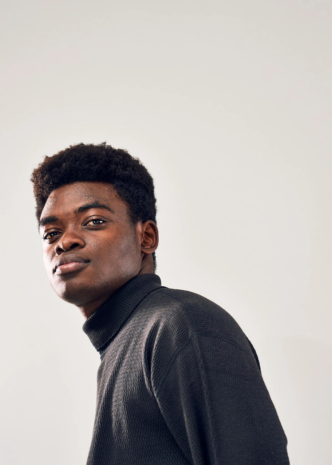 ほどよいゆとりのあるシルエットで、スウェットのように一枚でもサマになるバランス感。アウターからのぞくハイネックがアクセントとなり、防寒性もアップ。季節の変わり目から真冬まで、長く活躍する万能サーマルです。